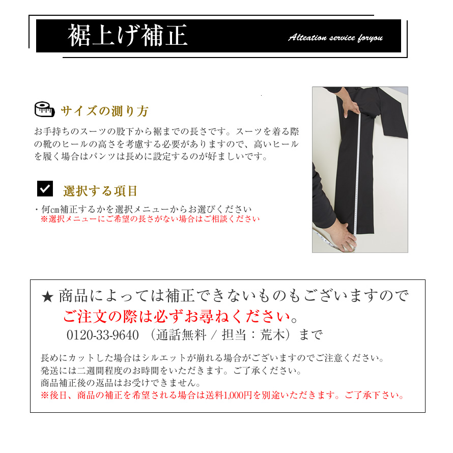 ダブル仕上げ補正利用チケット パンツ ※商品補正後の返品はできません。発送までに2週間ほどお時間をいただきます