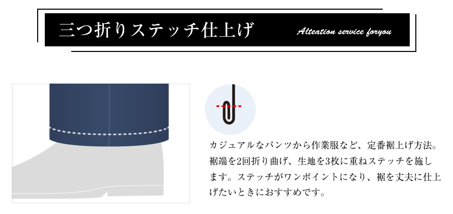 三つ折りステッチ仕上げ補正利用チケット パンツ ※商品補正後の返品はできません。発送までに2週間ほどお時間をいただきます